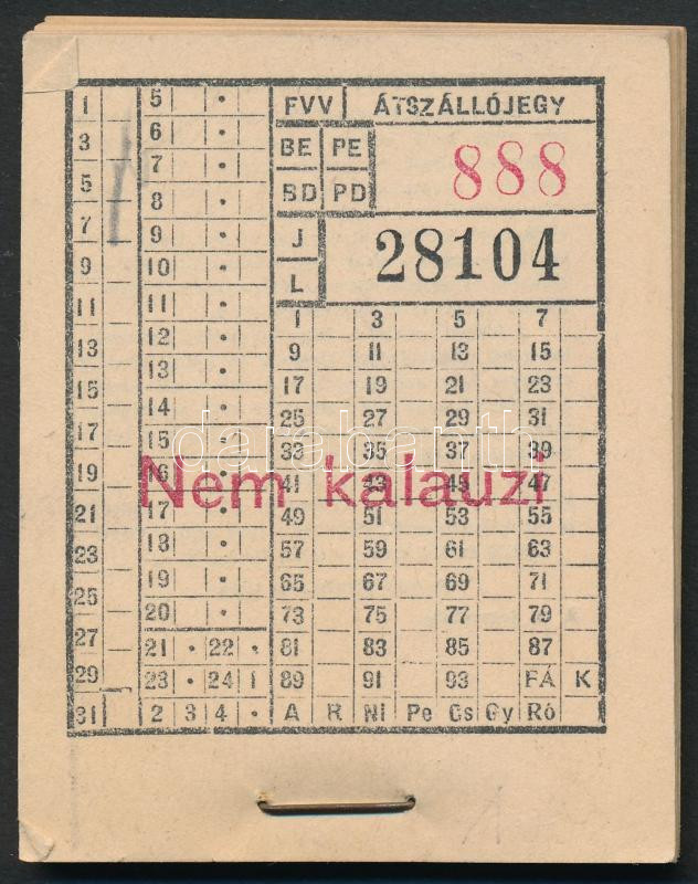 cca 1950-1965 A Fővárosi Villamos Vasút Községi Vállalat jegytömbje