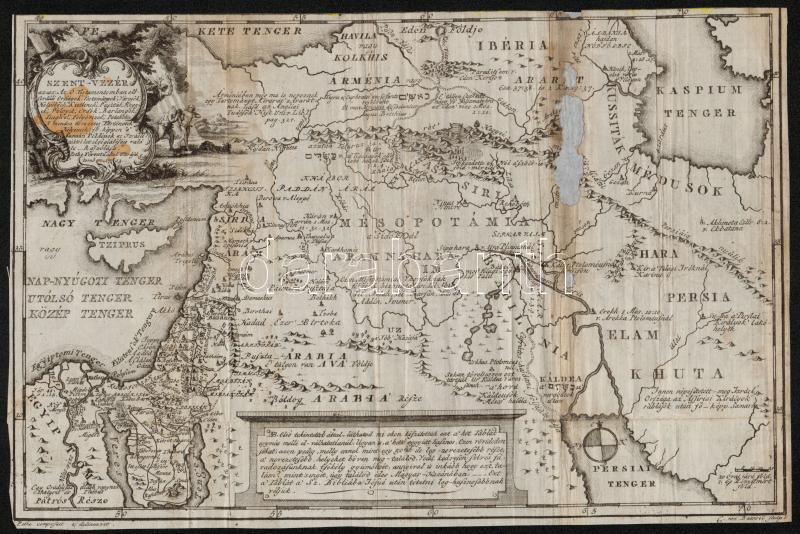 Description: 1794 Pethe Ferenc (1762-1832) magyar térképmetsző: Szent Vezér. A Szentföld térképe. Rézmetszetű térkép díszes kartussal. 21x33 cm Lyukkal / 1794 etched map of the Holy Land