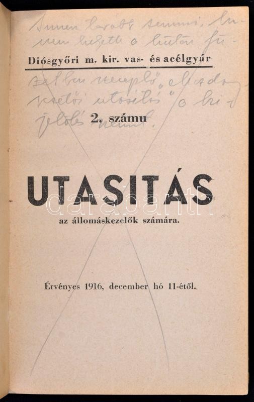 1916 Diósgyőri m. kir. vas- és acélgyár 1. 2 5. számu Forgalmi utasítá...