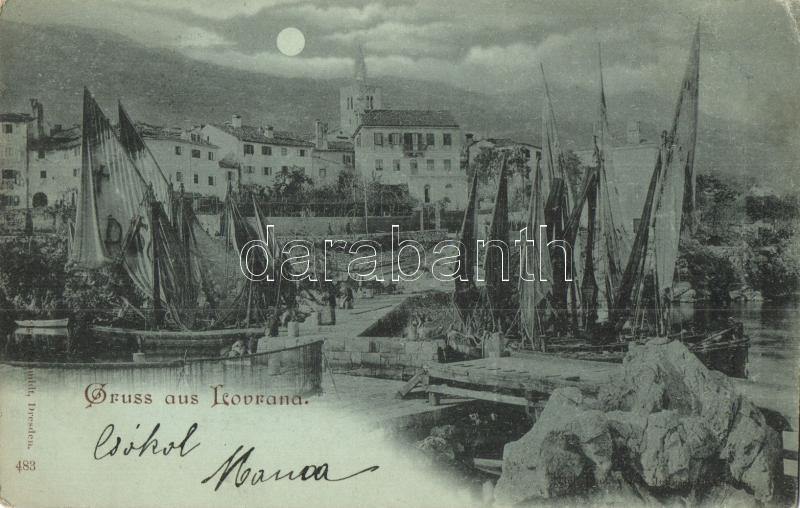 1899 Lovran, Lovrana; port, ships, night (EK)