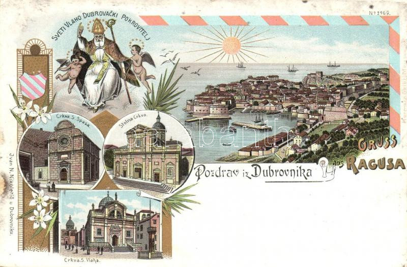 Dubrovnik, Ragusa; Svetli Vlaho Dubrovacki Pokrovitelj, Crkva S. Spasa, Stolna Crkva, Crkva S. Vlaha / churches, Ivan N. Nikoletic floral, litho
