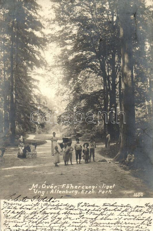 1903 Mosonmagyaróvár, Magyaróvár; Főhercegi liget, babakocsis hölgyek,...