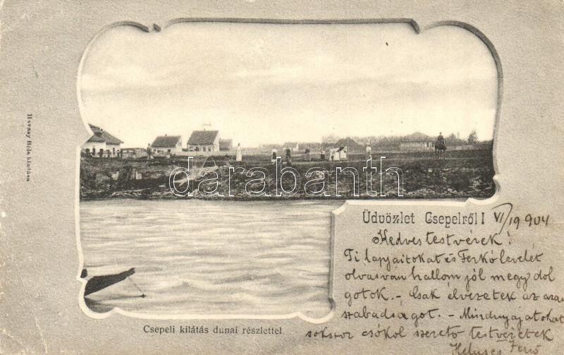Budapest XXI. Csepeli kilátás Dunával, Havassy Béla kiadása, Art Nouve...