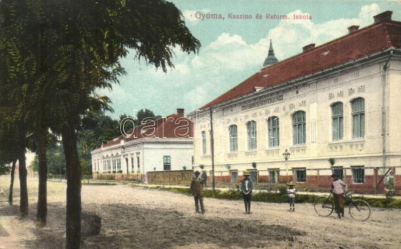 https://www.darabanth.com/en/288-Online-auction/288.0/Postcards/Hungary~200005/Gyoma-Kaszino-es-Reformatus-iskola-kerekparos-fl~II1517618