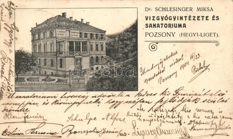 Pozsony, Pressburg, Bratislava; Hegyi-liget, Dr. Schlesinger Miksa víz... https://www.darabanth.com/en/288-Online-auction/288.0/Postcards/Slovakia~200007/Pozsony-Pressburg-Bratislava-Hegyi-liget-Dr-Schlesinger-Miksa-vizgyogyintezete-es-szanator~II1514965