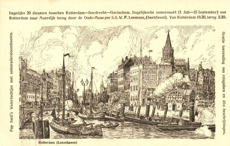 Rotterdam, Leuvehaven, Dutch art postcards s: Eug. Rensburg