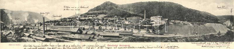Anina, Stájerlakanina, Steierdorf; vasgyár, Honisch udv. fényképész és Hubert Zs. kiadása. 3-részes panorámalap / iron factory, three-tiled panoramacard