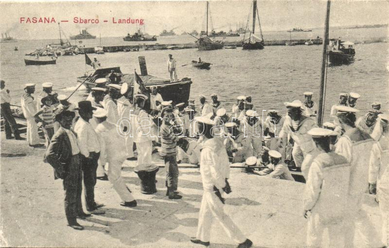 Fazana, Fasana; Sbarco / Landung / K.u.K. Kriegsmarine, arriving marin...