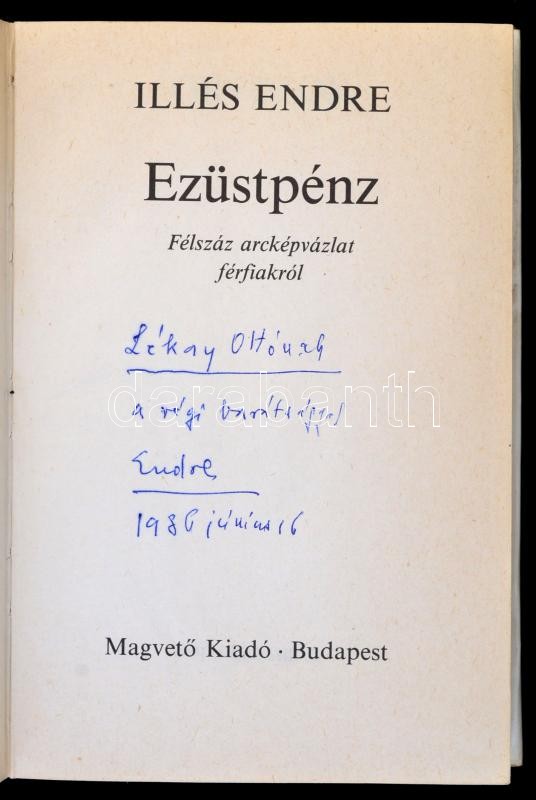 Illés Endre: Ezüstpénz. Félszáz arcképvázlat férfiakról. Budapest, 198... https://www.darabanth.com/en/289-Online-auction/289.0/Books/Books-Other~59/Illes-Endre-Ezustpenz-Felszaz-arckepvazlat-ferfiakrol-Budapest-1986-Magveto-Konyvkia~II1519190