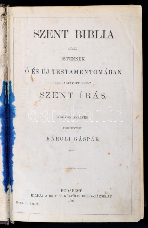 Szent Biblia. Fordította Károl Gáspár. Bp., 1904, Brit és Külföldi Bib... https://www.darabanth.com/en/289-Online-auction/289.0/Books/Books-Religion~55/Szent-Biblia-Forditotta-Karol-Gaspar-Bp-1904-Brit-es-Kulfoldi-Biblia-Tarsulat-Kiadoi-~II1525077