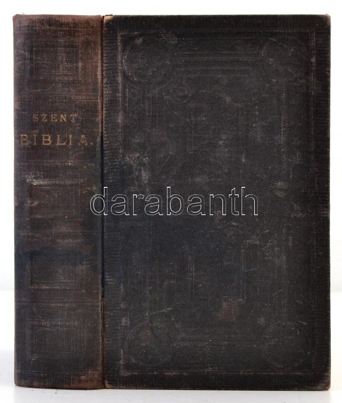 Description: Szent Biblia. Fordította Károl Gáspár. Bp., 1904, Brit és Külföldi Biblia-Társulat. Kiadói kopottas egészvászon-kötés, foltos címlappal, hiányzó elülső előzéklappal.