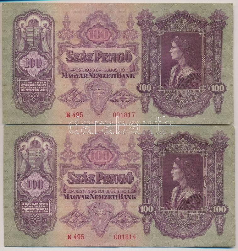 https://www.darabanth.com/en/289-Online-auction/289.0/Numismatics/Hungarian-Banknotes~300010/1930-100P-7x-sorszamkovetok-TII-III~II1519709