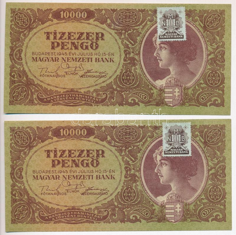 https://www.darabanth.com/en/289-Online-auction/289.0/Numismatics/Hungarian-Banknotes~300010/1945-10000P-MNB-belyeggel-2x-sorszamkovetok-TI~II1519735