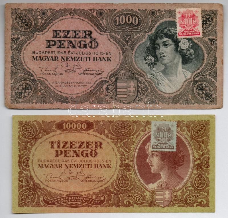 https://www.darabanth.com/en/289-Online-auction/289.0/Numismatics/Hungarian-Banknotes~300010/1945-1000P-plus-1945-10000P-mindketto-betuhibas-MNB-belyeggel-TIII~II1522153