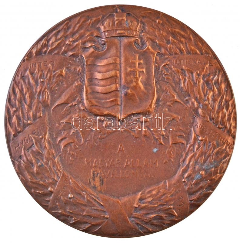 Description: Ifj. Vastagh György (1868-1946) 1911. "Erzsébet királyné - Magyarország védő angyala / Drezdai Egészségügyi Világkiállítás - A Magyar Állam Pavillonja" Br emlékérem (76.3g/60mm) T:2