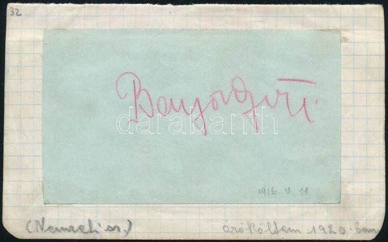 1916 Bajor Gizi színésznő aláírása papírlapon