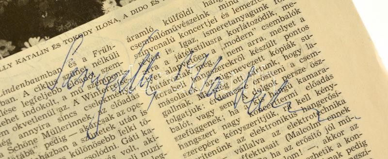 1978 A Muzsika c. magazin egy száma, benne számos operaénekes és karmester aláírásával Tokody Ilona, Vörös Csaba, Palcsó Sándor, George Malcolm, Gregor József, Zempléni Kornél, Fischer Annie, Bolla János, Banda Ede, Nagy János, némelyikőjük többször.