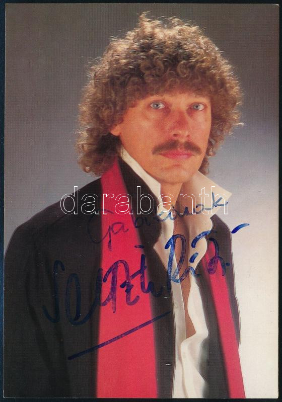 Soltész Rezső (1945-) énekes, zeneszerző, szövegíró aláírása az őt ábrázoló fotón, 15x10 cm