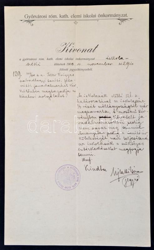 https://www.darabanth.com/en/289-Online-auction/289.0/Other-collectibles/Documents~17/1900-Gyorvarosi-rom-kath-elemi-iskolai-onkormanyzat-kivonata-tanito-munkamegtagadasaval-k~II1523368