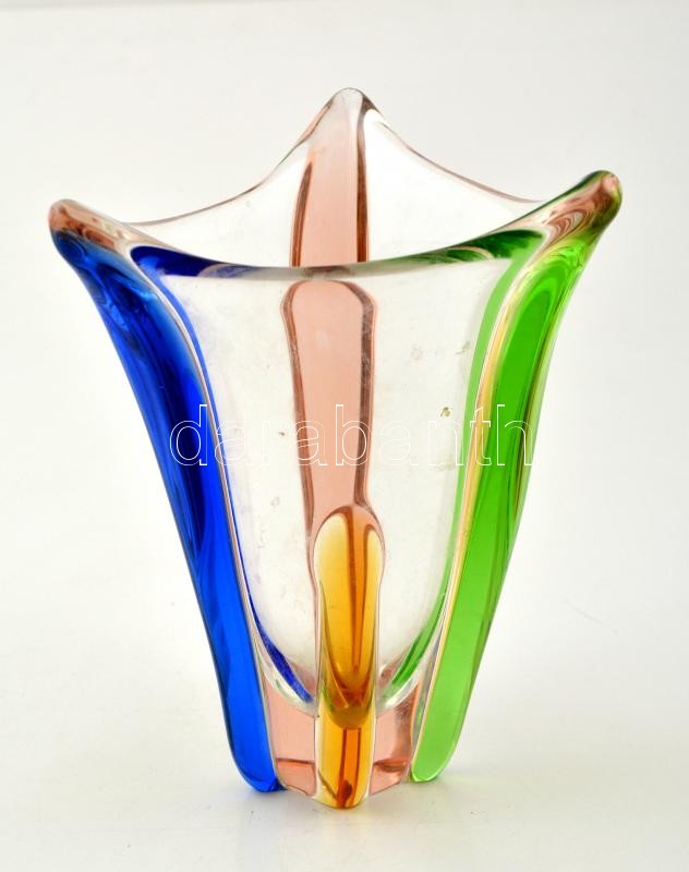 Anyagában színezett, szakított üvegváza, hibátlan, m: 20 cm