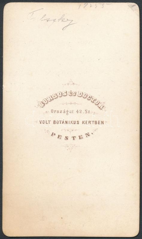 cca 1860 Pulszky Ferenc (1814-1897) politikus, régész, műgyűjtő, szabadkőműves, MTA tag, Borsos és Doctor Pest, keményhátú fotó, 10x6 cm.