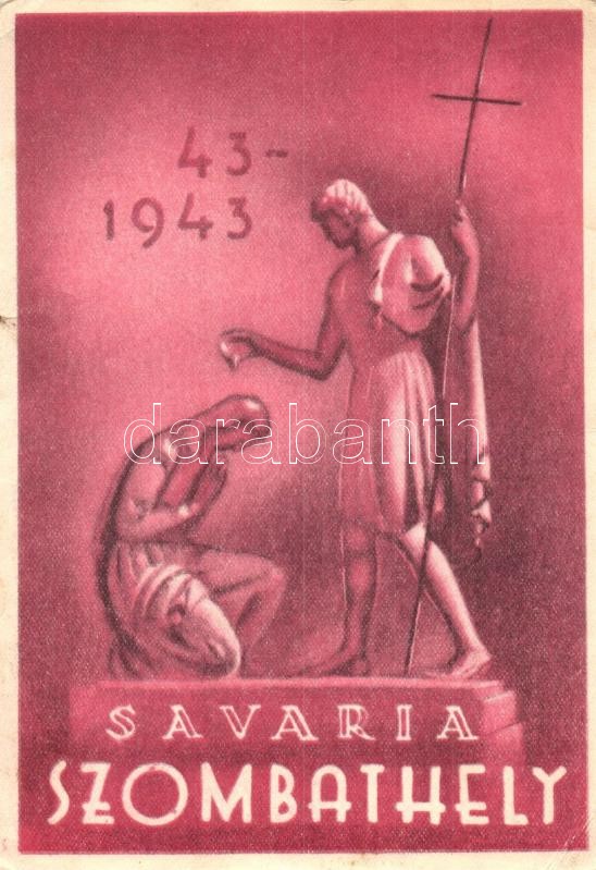 1943 Szombathely, Rajki István szobra, Szent Márton Savaria-ban megkereszteli édesanyját; emlék Szombathely 1900 éves városi múltjából So.Stpl (EK)