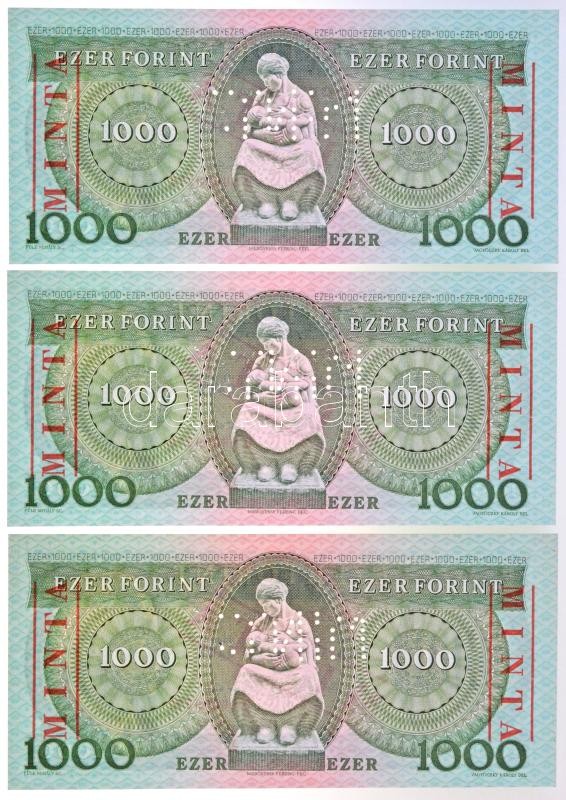 1993. 1000Ft (3x) sorszámkövetők "MINTA" felülnyomással és perforációv...