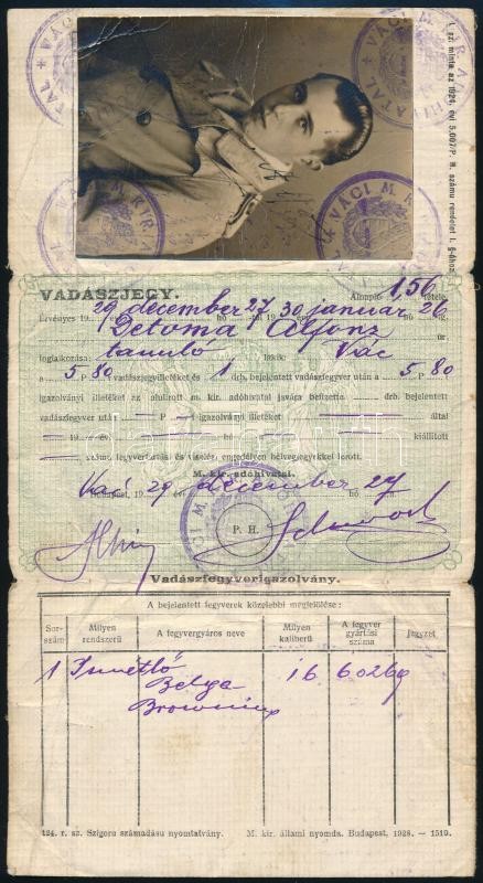https://www.darabanth.com/en/29-Major-auction/29.1/Other-collectibles/Documents~11760/1929-Vac-Fenykepes-vadaszjegy-tanulo-reszere-Hunting-licence~II1766795