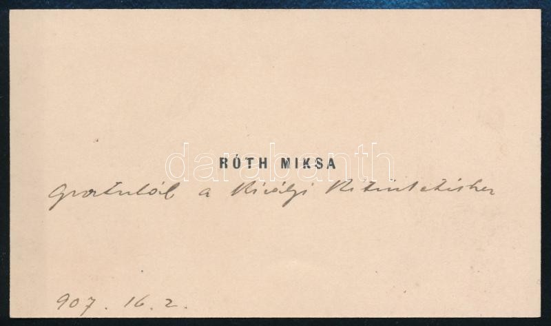 https://www.darabanth.com/en/29-Major-auction/29.1/Other-collectibles/Historical-documents-manuscripts~12115/1907-Roth-Miksa-1865-1944-nevjegykartyaja-sajat-kezzel-irt-gratulalo-soraival~II1775887