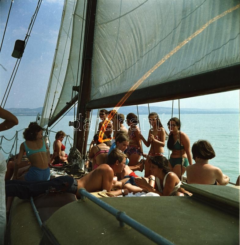 1971 Balaton, az Uránusz nevű vitorláson készült 13 db szabadon felhas...