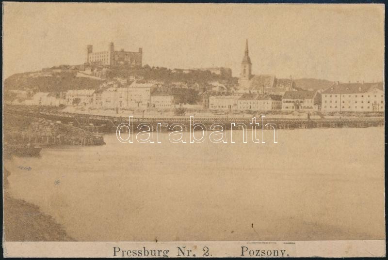 Description: cca 1860 Pozsony látképe, fotó Heinrich Sommer bécsi műterméből, feltehetőleg a "Reise an der Donau" sorozatból, feliratozva, 6×9 cm /