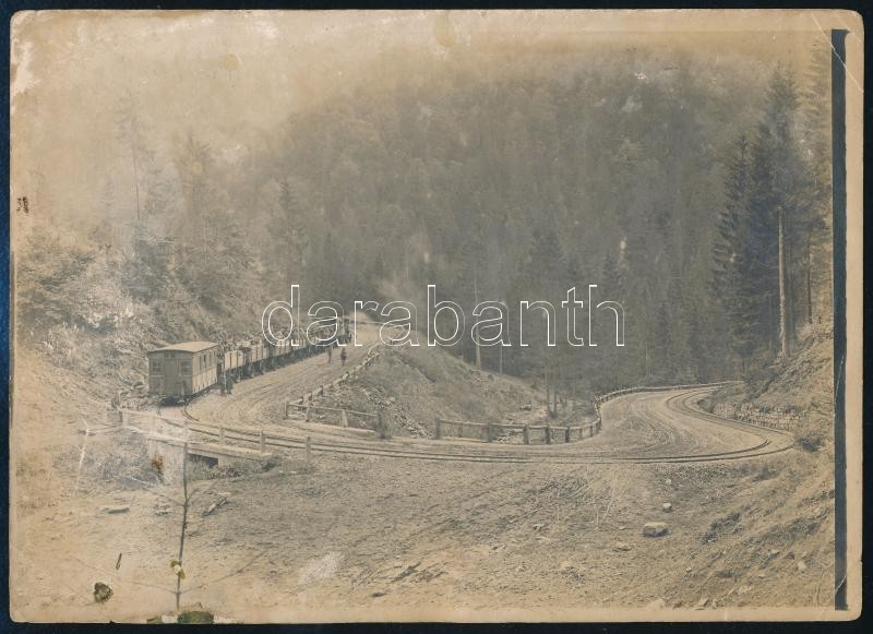 cca 1918 Borgótiha-Dornavölgy, elektrotrén (benzin-elektromos vonat), fotó, hátulján feliratozva, foltos, 13×18 cm / cca 1918 Tiha Bârgăului, gasoline-electric train, photograph with notes on its back, with small stains, 13×18 cm
