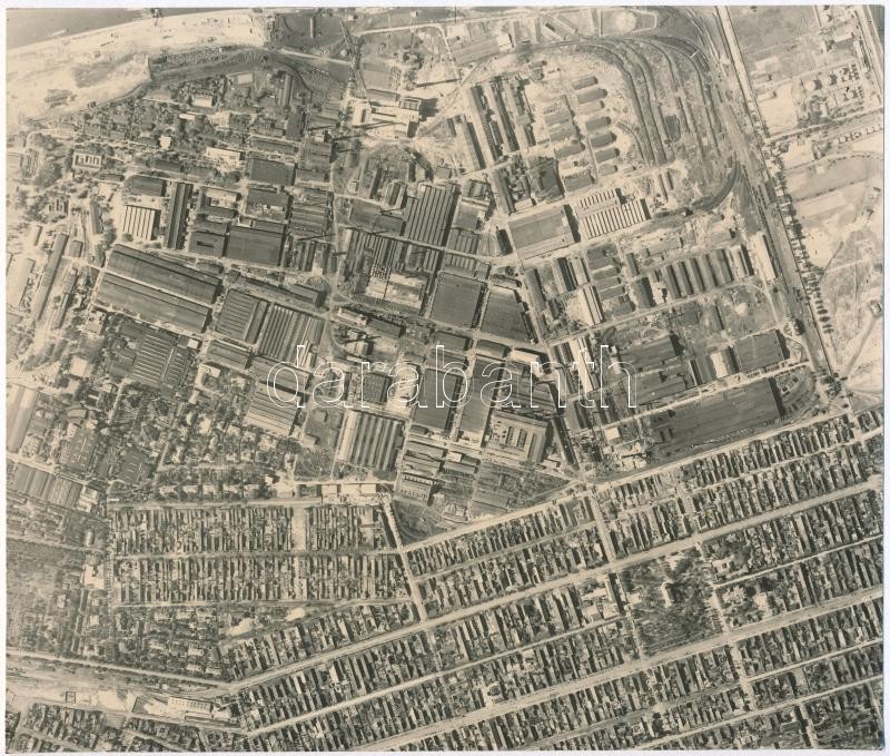 cca 1944 Győr, a lebombázott Weiss Manfréd-gyár, felderítő légifotó, h...
