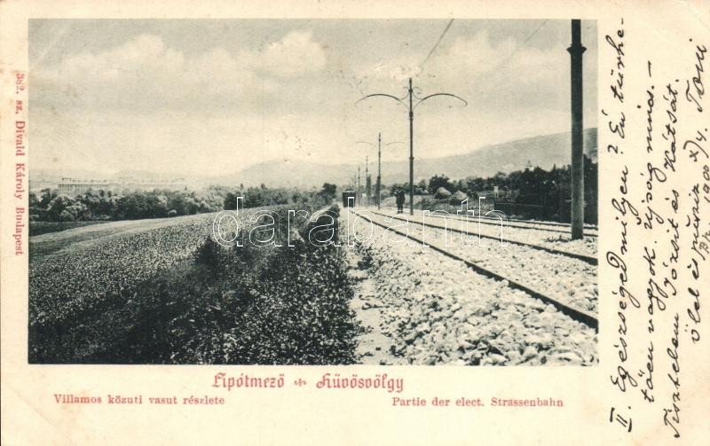 1900 Budapest II. Lipótmező és Hűvösvölgy, villamos közúti vasút részlete. Divald Károly 382. (EK)