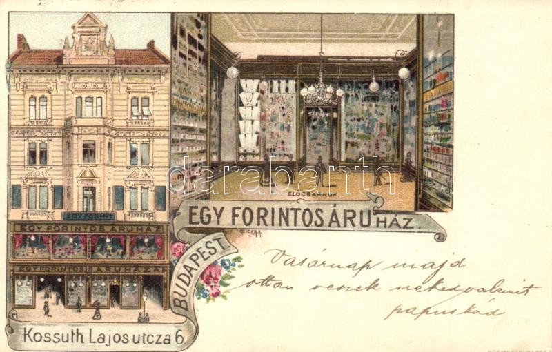 1900 Budapest V. Egy Forintos Áruház az előcsarnokkal. Kossuth Lajos u... https://www.darabanth.com/en/29-Major-auction/29.1/Postcards/Hungary~11796/1900-Budapest-V-Egy-Forintos-Aruhaz-az-elocsarnokkal-Kossuth-Lajos-utca-6-Kosmos-Art-Nouveau-l~II1768014