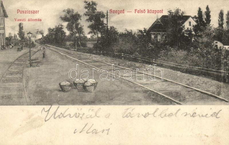 Pusztaszer, Vasútállomás gőzmozdonnyal, Szeged-Felső központ. Grünwald...