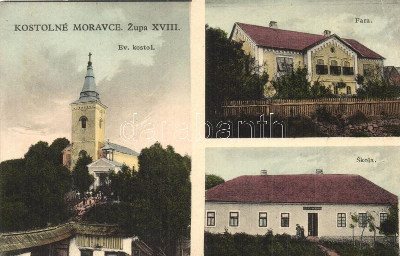 Egyházmarót, Kostolné Moravce (Hontmarót, Hontianske Moravce); A XVIII. században, iskola, templom, paplak / Zupa XVIII, Fara, Skola / school, church, rectory (EK)