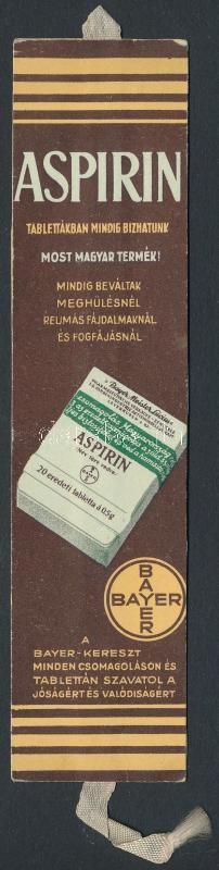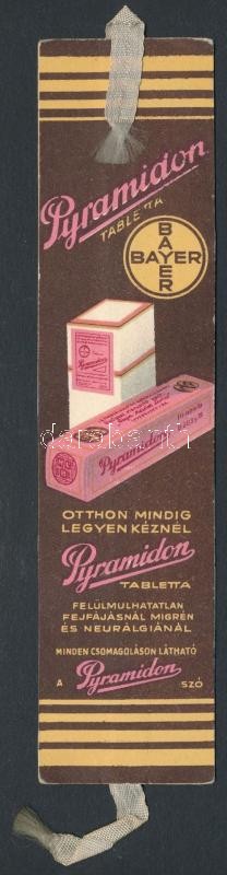 cca 1930 Pyramydon és Aszpirin tabletta bayer gyógyszertár reklám kétoldalas könyvjelző reklám