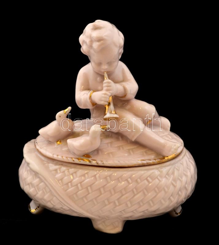 Furulyázó kisfiús bonbonier, kopott aranyozással, jelzés nélkül, m:10 ...