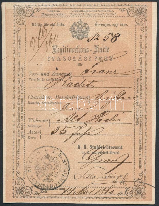 https://www.darabanth.com/en/290-Online-auction/290.0/Other-collectibles/Documents~100017/1860-Nemet-es-magyar-nyelvu-igazolasi-jegy-15-kr-okmanybelyeggel-ID~II1469589