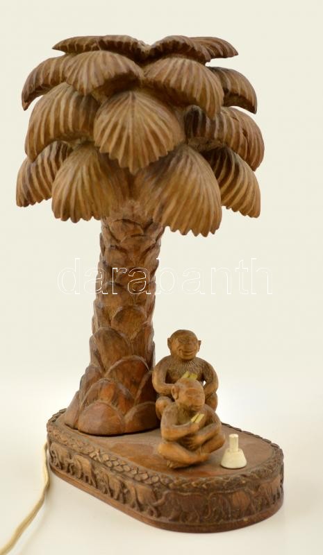 Szebellédi Géza (?-?): Majmos fa lámpa, sérült, nem működik, m: 30 cm