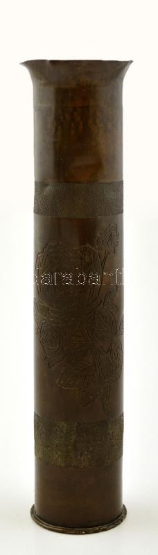 1942 agyú hüvelyből készült emlék váza, gravírozott, kis horpadással, m: 26 cm