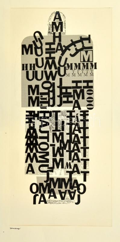Konecsni jelzéssel: Betűkollázs, vegyes technika, papír, paszpartuban,...