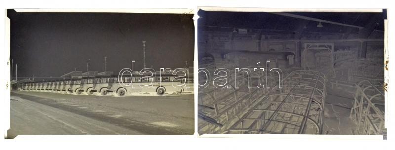 cca 1955 Ikarus trolibuszok gyártása Budapesten, 2 db nagyméretű, szabadon felhasználható, vintage negatív, 9x12 cm