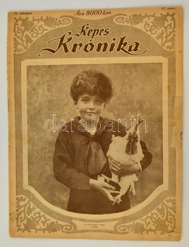 Description: 1924 Képes Krónika, 1924. november 23., VI. évf., 47. szám, kissé szakadozott borítóval, a címoldalon Habsburg Ottó, a hátoldalon a számüzött királyi család.