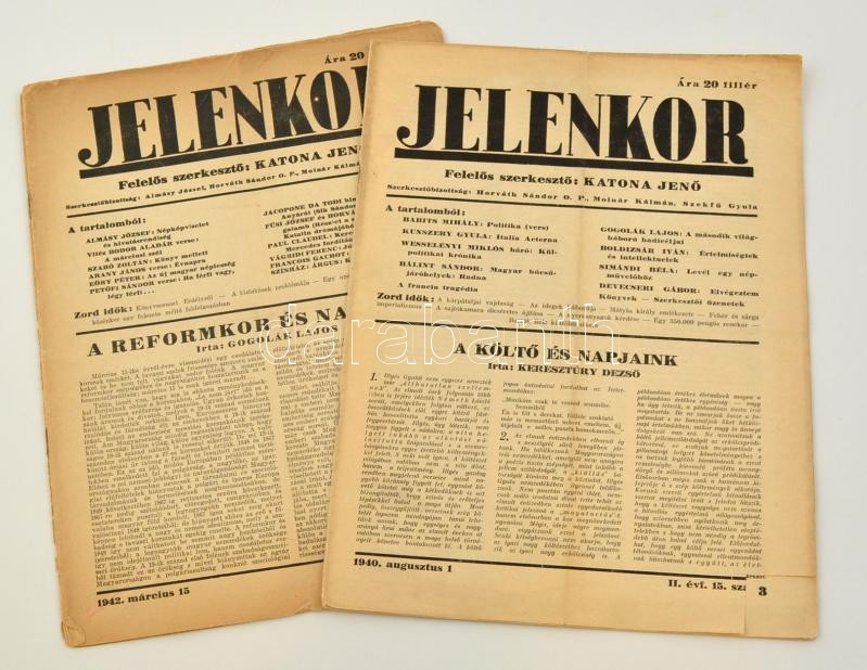 https://www.darabanth.com/en/290-Online-auction/290.0/Other-collectibles/Printed-Materials~100028/1940-1942-a-Jelenkor-2-db-lapszama-2-evf-15-ill-4-evf-6-sz-szamos-erdekes-irassal~II1528858