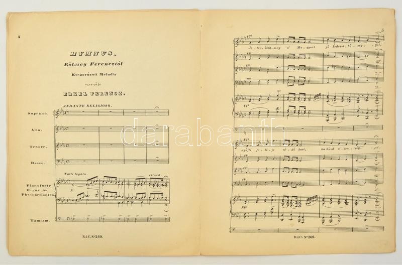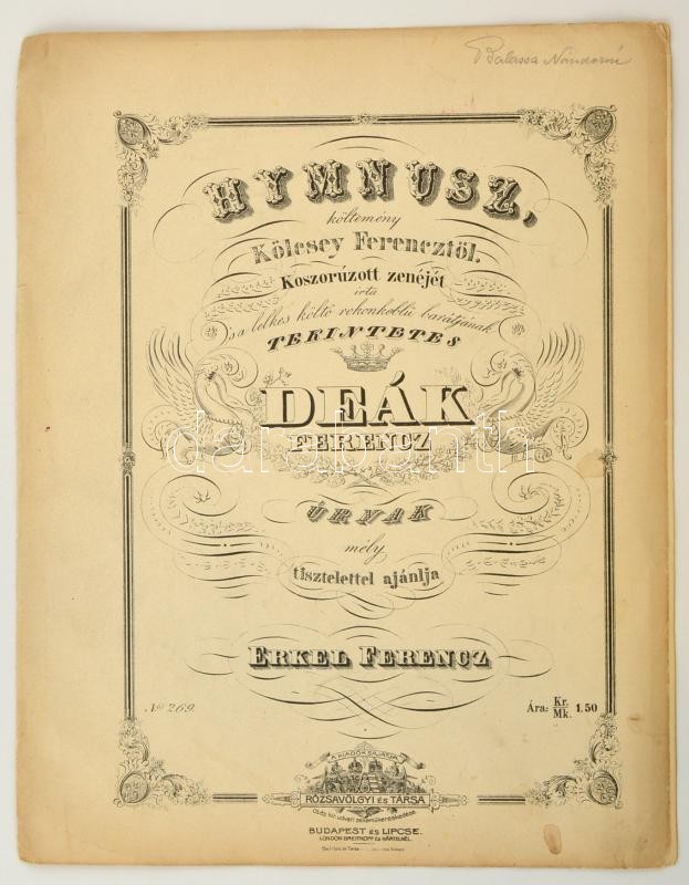 Hymnusz. Költemény Kölcsey Ferncztől. Koszorúzott zenéjét írta, s a le... https://www.darabanth.com/en/290-Online-auction/290.0/Other-collectibles/Printed-Materials~100028/Hymnusz-Koltemeny-Kolcsey-Ferncztol-Koszoruzott-zenejet-irta-s-a-lelkes-kolto-rokonkebl~II1529186