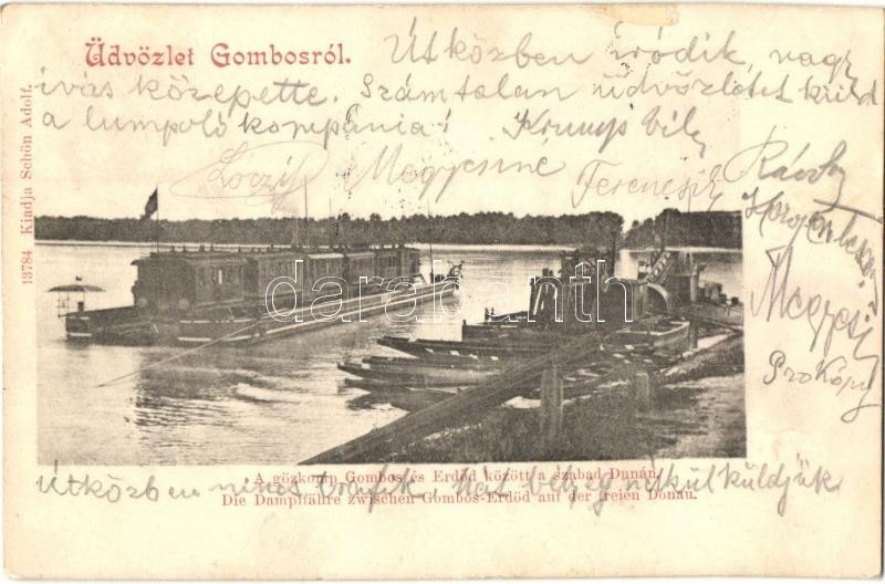 Gombos, Bogojeva; Gőzkomp Gombos és Erdőd között a szabad Dunán, kiadja Schön Adolf / steam ferry