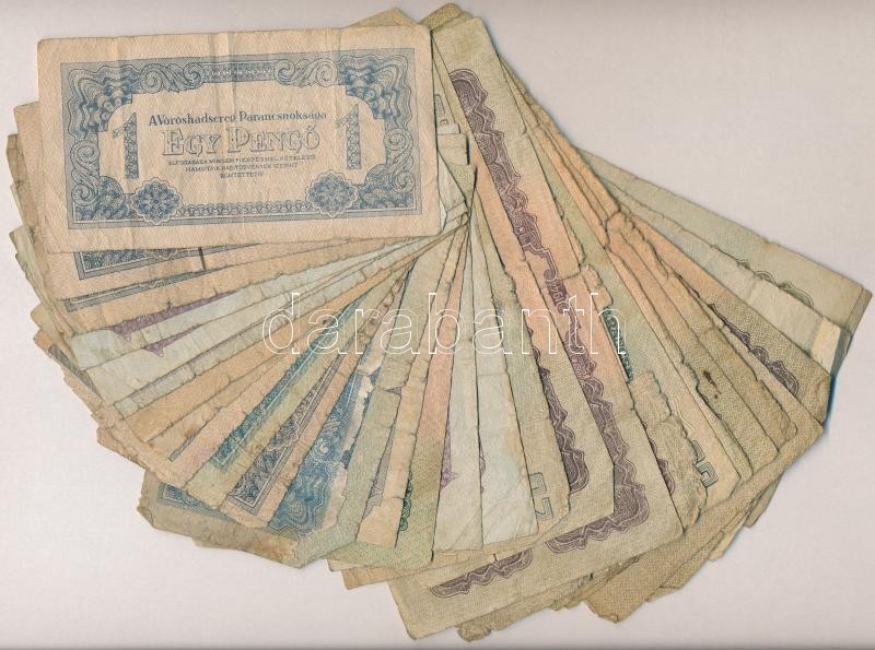 1944. 1P-100P (30x) "A Vörös Hadsereg Parancsnoksága" főleg gyenge tartású bankjegyek T:III-,IV,V