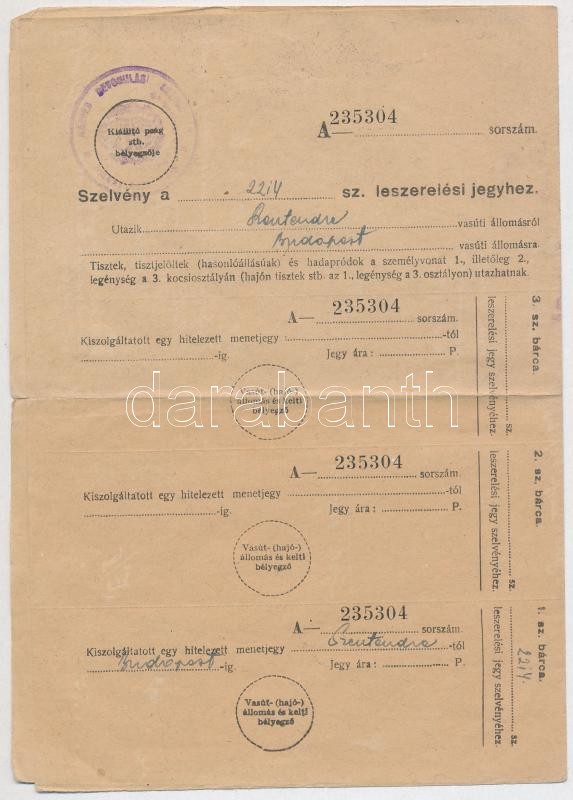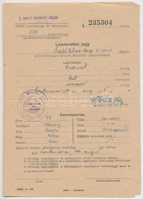 https://www.darabanth.com/en/291-Online-auction/291.0/Other-collectibles/Military~26/1944-Szentendre-8-honved-bevonulasi-kozpont-altal-kiallitott-leszerelesi-jegy~II1539777